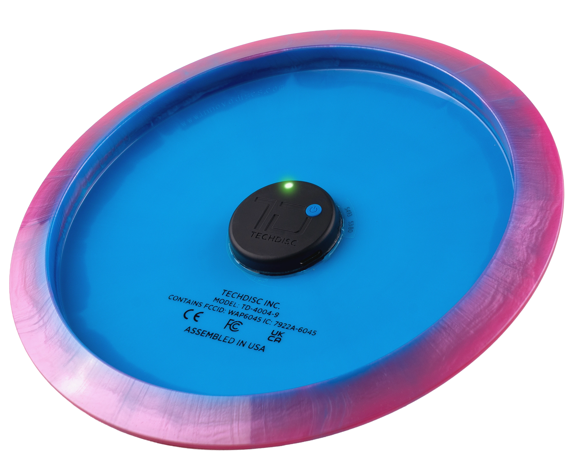 TechDisc is a small, sensor puck permanently attached to a golf disc and calibrated during assembly. The sensors capture the disc's full motion data from start of the run-up through release. The sensor data is processed in the cloud to generate throw metrics.
